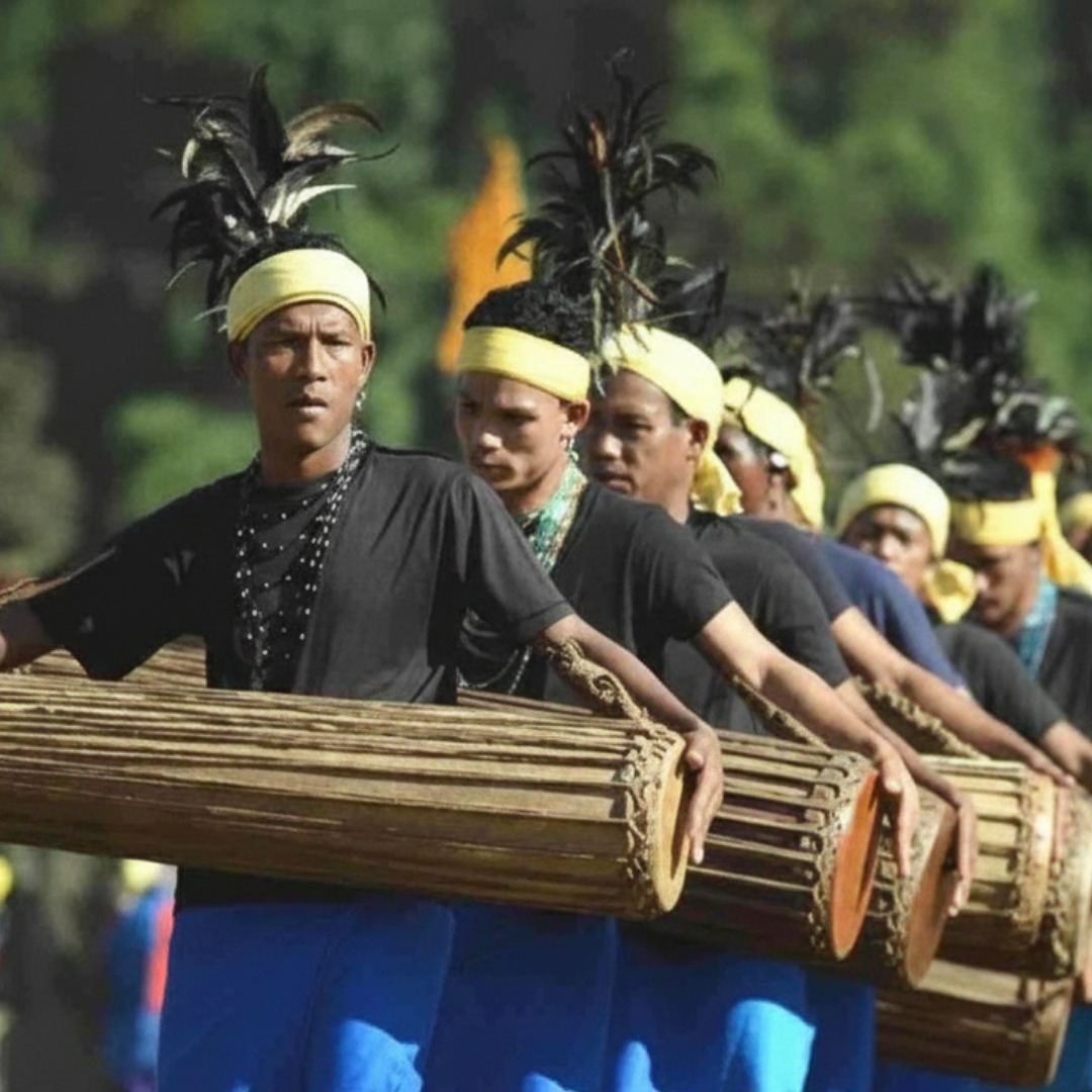 The sound of dozens of traditional drums beating in sync in the middle of green hills is something you feel in your chest before your ears.